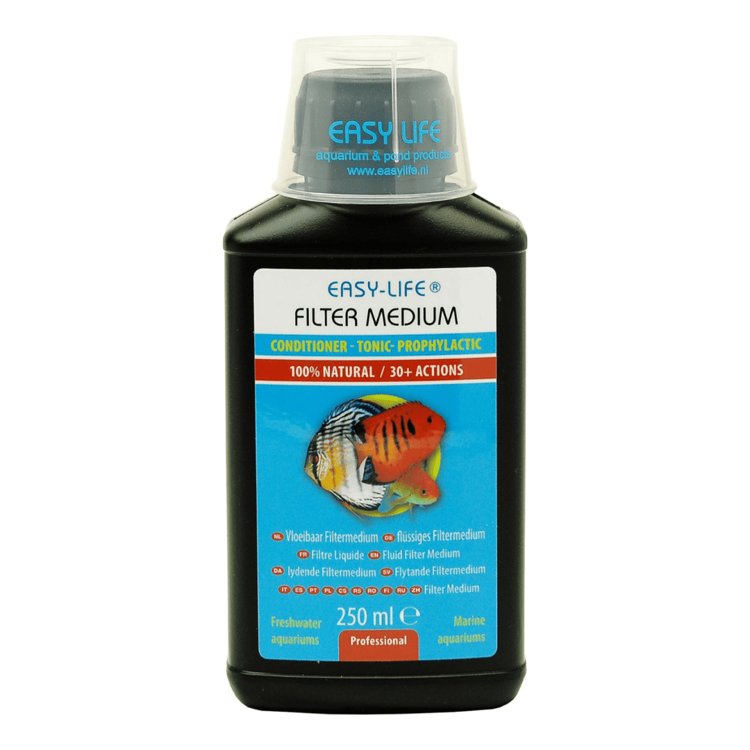 Den ultimative vandpleje, som ikke indeholder kemikalier. Easy-Life Filter Medium er det mest alsidige vandplejeprodukt på markedet. Det kan bruges til at gøre vandet krystalklart. Det bruges både som forberedelse af vandet, som vedligeholdelsesprodukt, stimulator (f.eks. for plantevækst) og forebyggende/profylaktisk for at hindre infektioner. Det løser effektivt en række fersk- og saltvandsproblemer. Yderligere er det fremstillet af 100% naturlige produkter og er yderst sikkert at anvende.