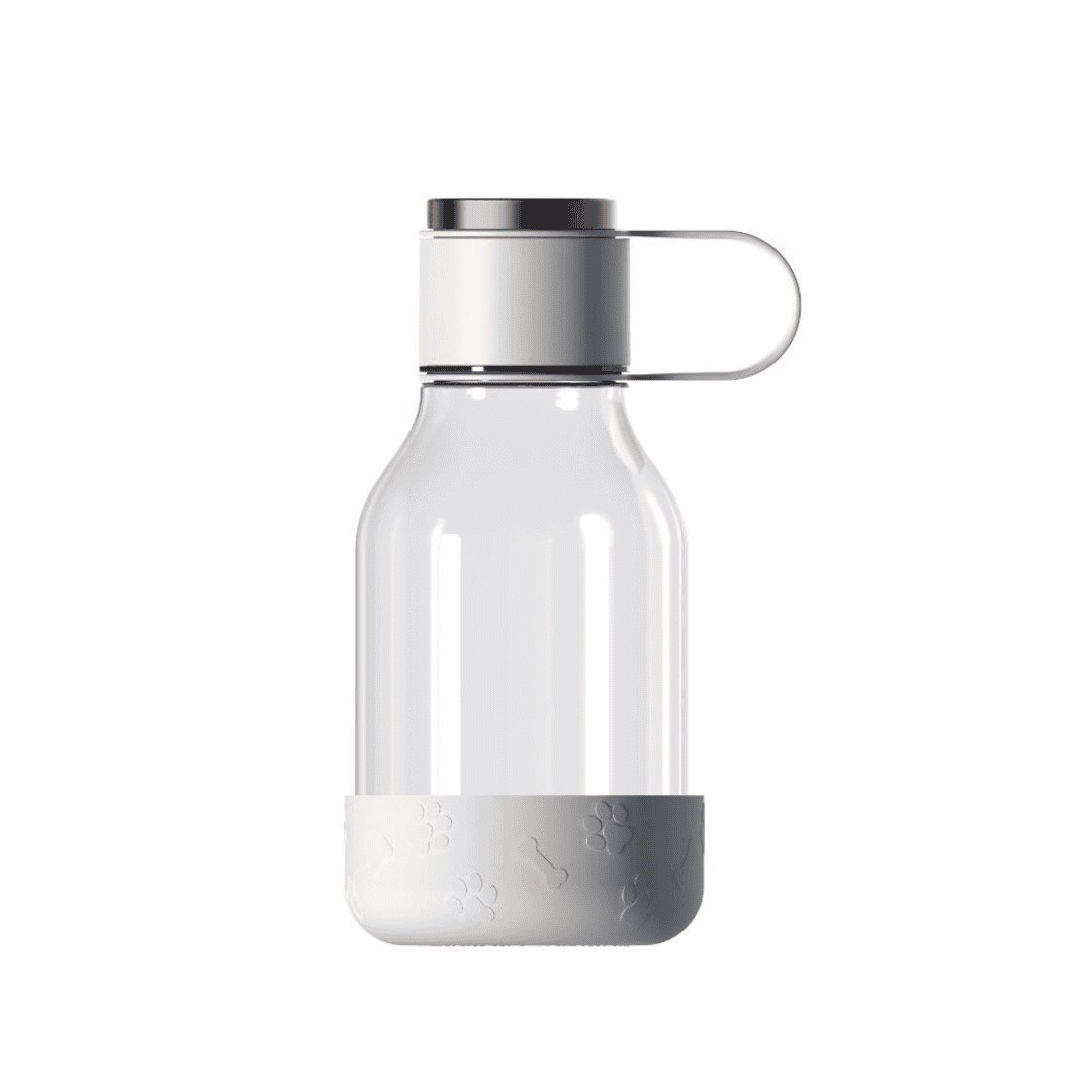 ASOBU vandflasken er udstyret med en aftagelig silikoneskål, der aftages fra bunden af flasken, når hunden er tørstig.