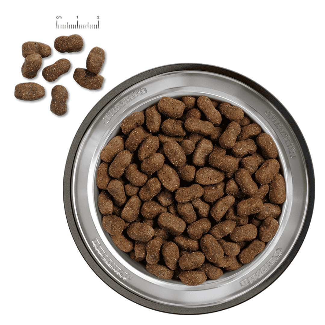 Sammensætning: Frisk hestekød, -hjerte, -lever, -lunge (40 %); ærtemel; kartoffelstivelse; hesteprotein¹ (12 %); amarant (5 %); bønnemel (Vicia faba); tørret roerester²; hav-zooplankton (krill) (2,5 %); inaktiveret ølgær¹; johannesbrødkerner¹; ærteprotein; laksolie; gær³; chiafrø; solsikkeolie (1 %); kaliumchlorid; natriumchlorid; urter¹ (brændenælde, guldrod, tusingblomst, kamille, fennikel, kommen, mistel, ryllik, brombærblade) (0,2 %); Yucca schidigera *¹tørret *²sukkerfjernet *³hydrolyseret