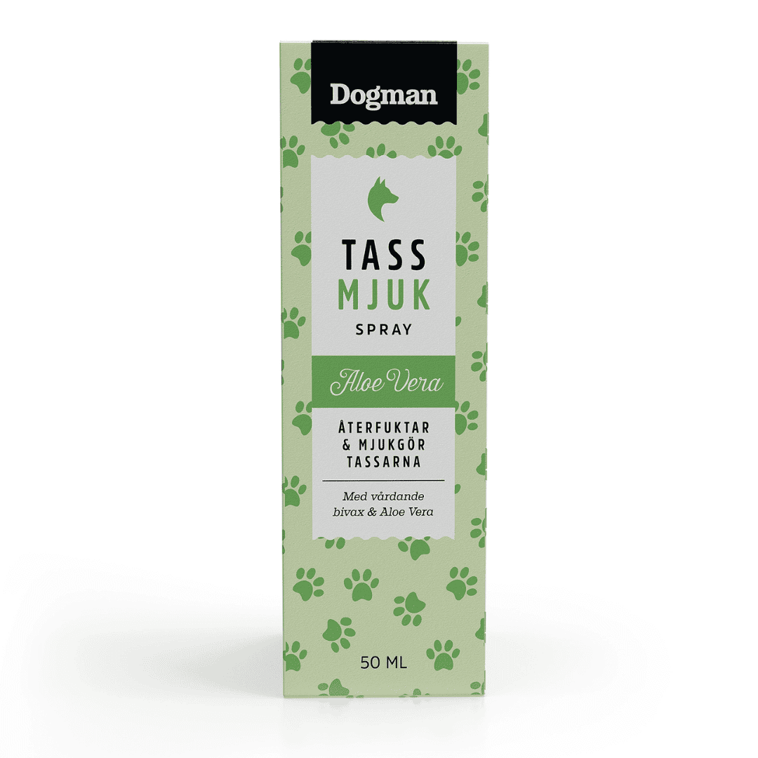 Potespray for hunde. Fugter og smører følsomme poter. Indeholder plejende bivoks og Aloe Vera.