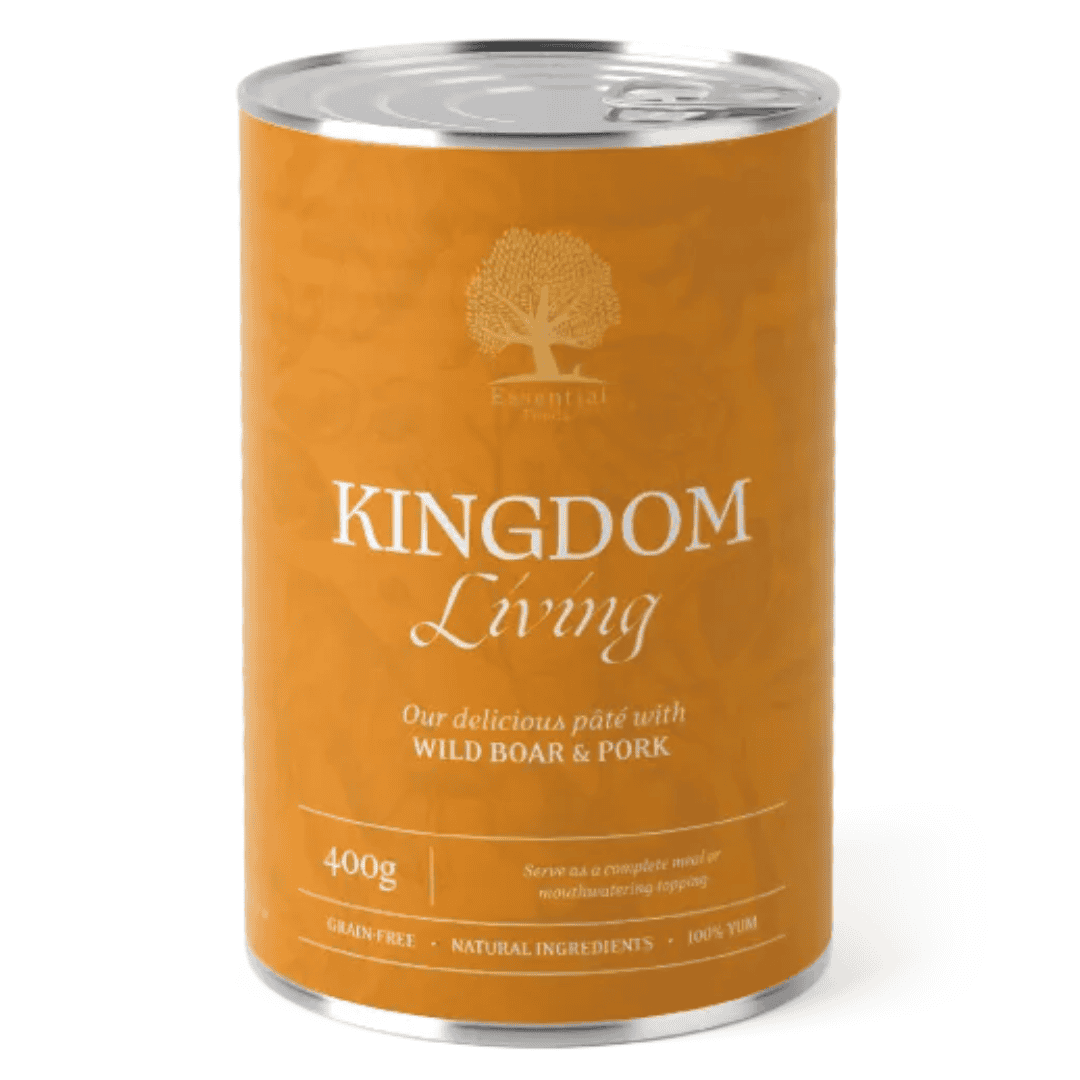 ESSENTIAL KINGDOM LIVING PÂTÉ er en lækker paté med saftige kødstykker af vildsvin og gris for voksne hunde. Kan serveres som et fuldfoder måltid eller en himmelsk topping. Den er kornfri, tilberedt med udelukkende naturlige ingredienser, og hvis vi selv skal sige det: 100% YUM!