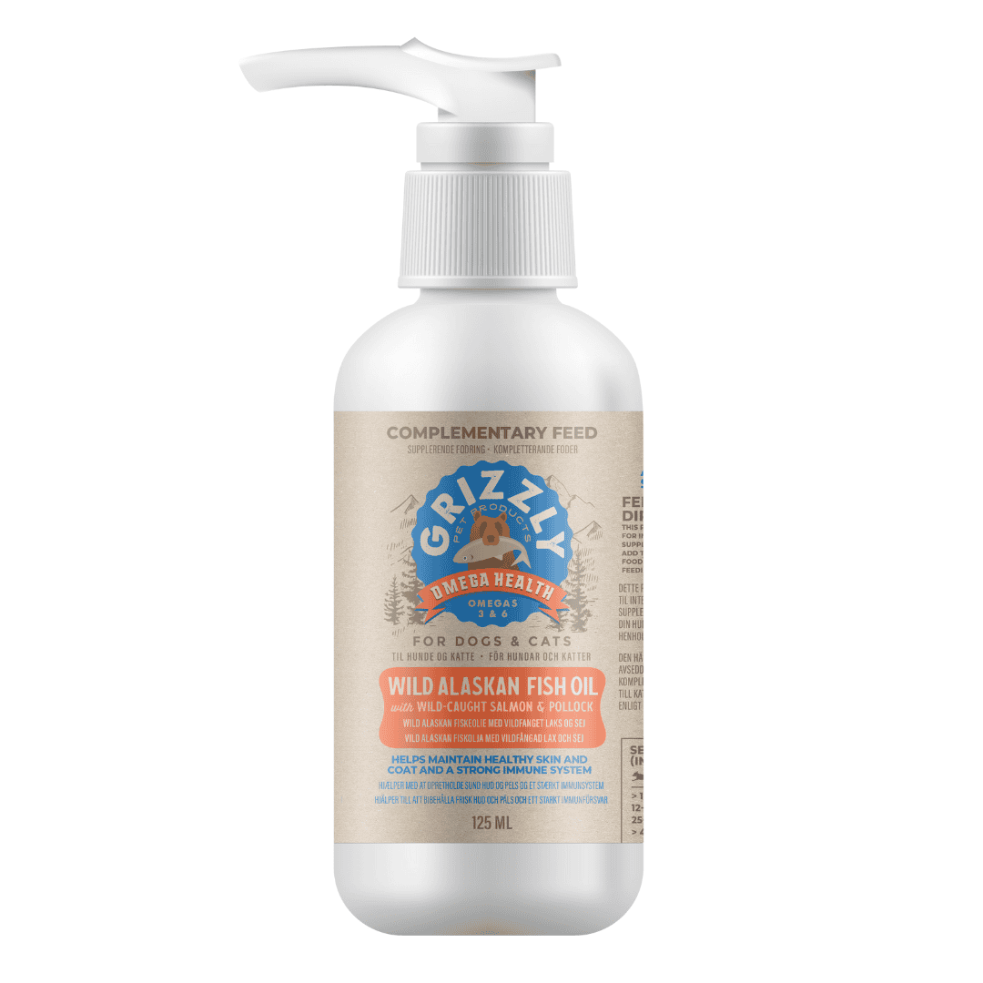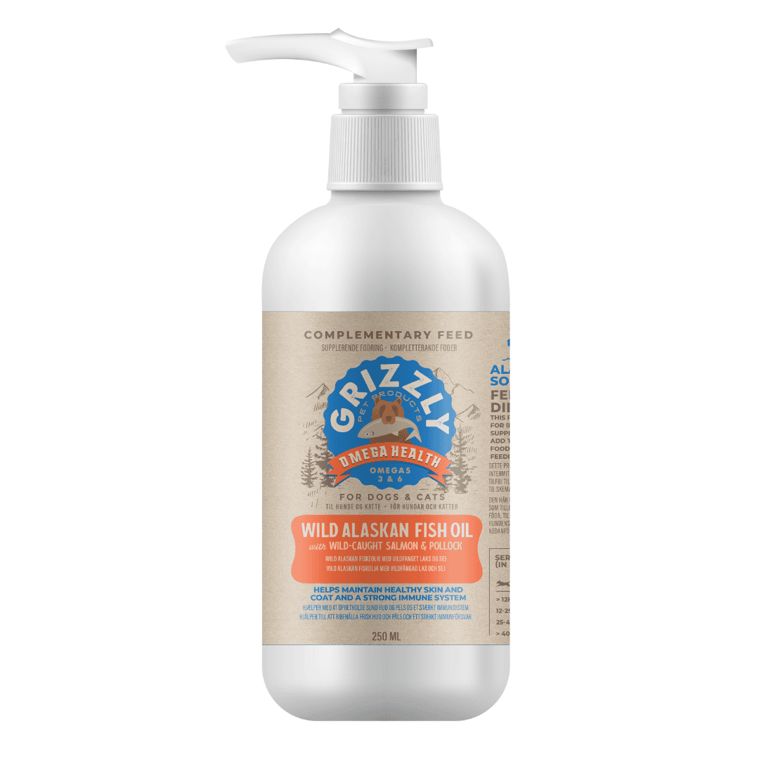 Grizzly fiskeolie er et fantastisk supplement til kæledyrets måltider, uanset hvordan der fodres. Pumpes blot oven på dyrets foder. Fiskeolie er med til at styrke hjernen og de kognitive funktioner, immun systemet og leddene, lige som det er med til at give en flot pels og en sund hud.