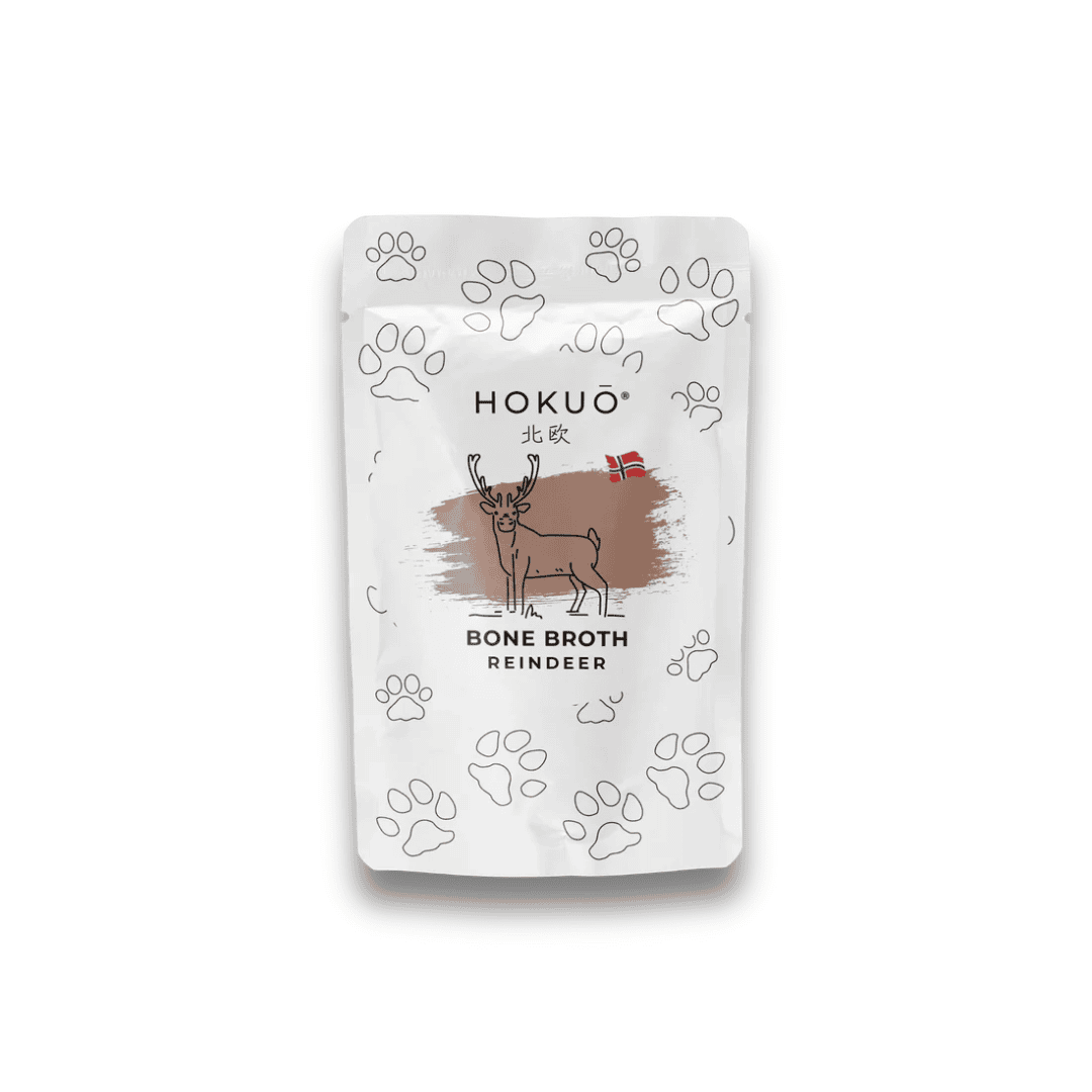 Hokuō® Reindeer Bone Broth – Nærende wellnes fra Norges vildmark Forkæl dit kæledyr med det bedste med vores Reindeer Bone Broth, lavet af førsteklasses rensdyrknogler fra de uberørte landskaber i Norge. Denne broth er langsomt simrende for at udvinde de maksimale næringsstoffer, der hjælper med at støtte dit kæledyrs fælles sundhed, fordøjelse og generelle velvære. Perfekt som et måltid topper eller til at blande i vand for ekstra hydrering, det er en alsidig og næringsrig tilføjelse til dit kæledyrs kost.