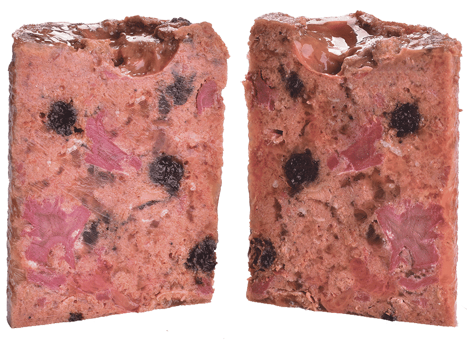 Vådfoderet er kornfri, glutenfri og kartoffelfri. Der er kun anvendt kød og bær. Det er et glimrende supplement til tørfoder fra Carnilove.