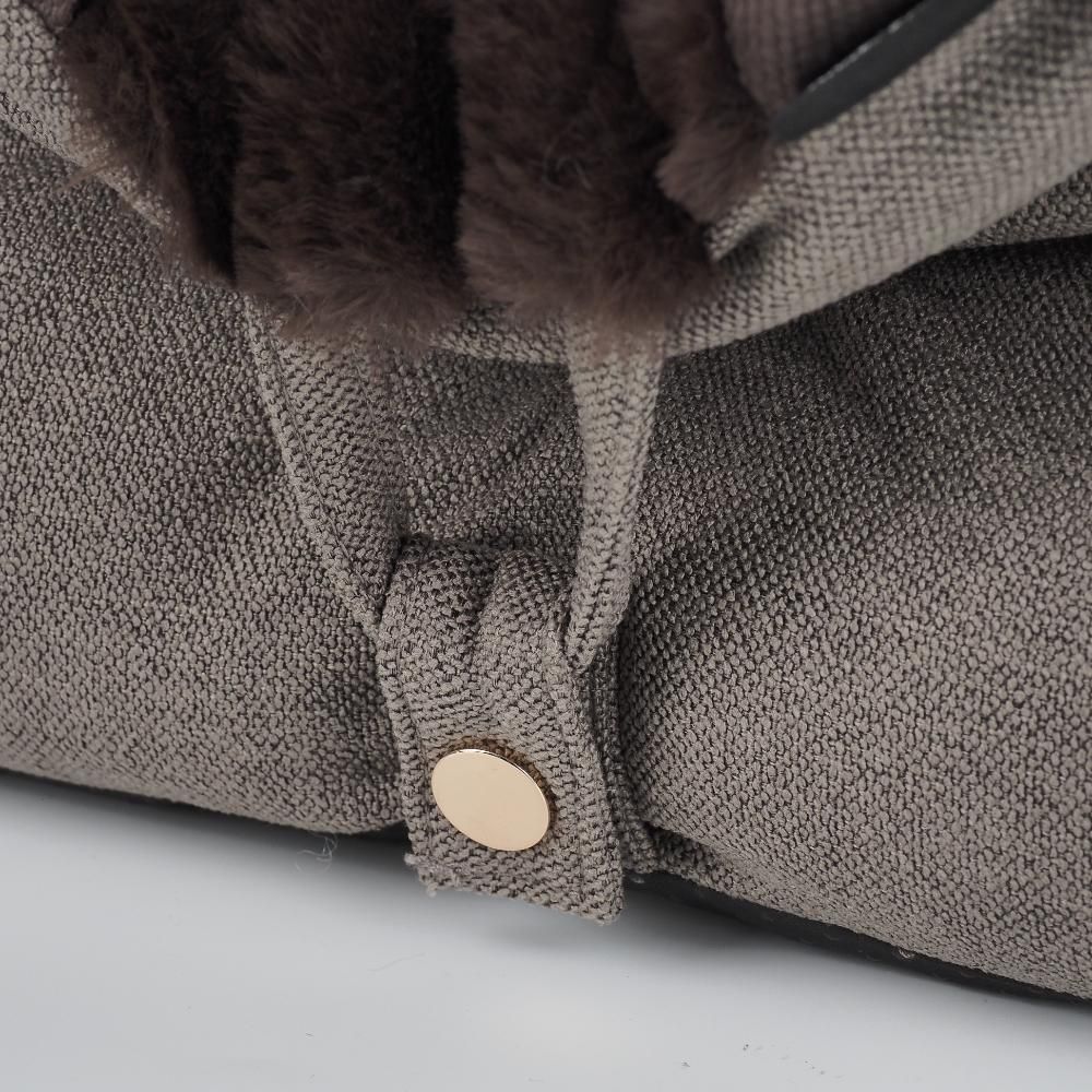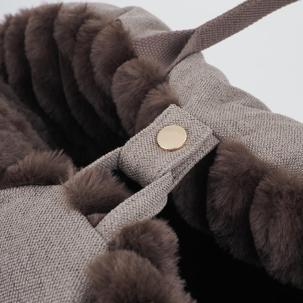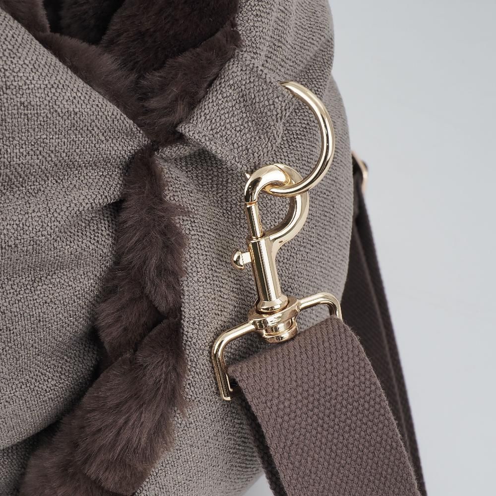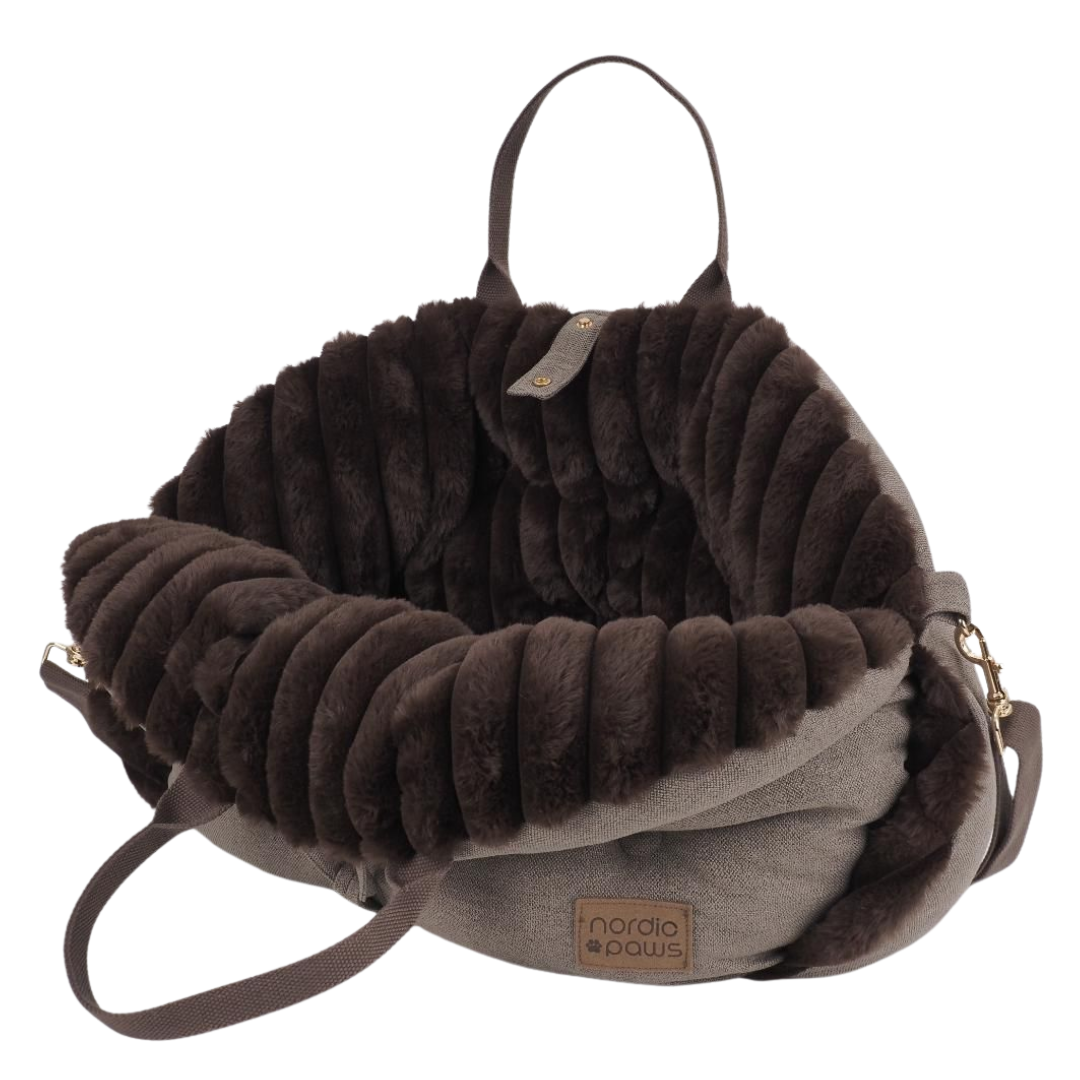 Elegant og funktionel transporttaske til små hunde og katte, designet til både komfort og sikkerhed. Den bløde inderside i plys giver kæledyret en hyggelig og tryg plads, mens de høje sider beskytter mod vind og uro under transport. Tasken er udstyret med en praktisk sikkerhedsline, der kan fastgøres til selen, så kæledyret bliver sikkert på plads.