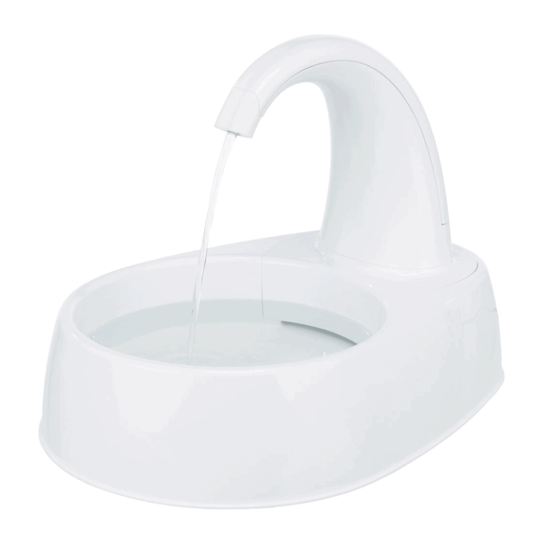 Denne drikkefontæne i hvid fra Trixie har en kapacitet på 2.5 liter. Vandfontænen beriger vandet med ilt og faciliterer køling gennem cirkulation, hvilket skaber en mere attraktiv drikkeoplevelse for kæledyret. Et indbygget filter er designet til at rense vandet og forbedre dets kvalitet. Pumpen, der muliggør cirkulationen af vandet, kan udskiftes ved behov. Produktet er udstyret med både USB-stik og netstik, hvilket giver fleksibilitet i strømkilder. Udskiftningsfiltre er tilgængelige og kan købes separat. Vandfontænen er lavet af plast og udgør en bekvem og hygiejnisk løsning til at opretholde et frisk og iltet drikkevand til kæledyr.