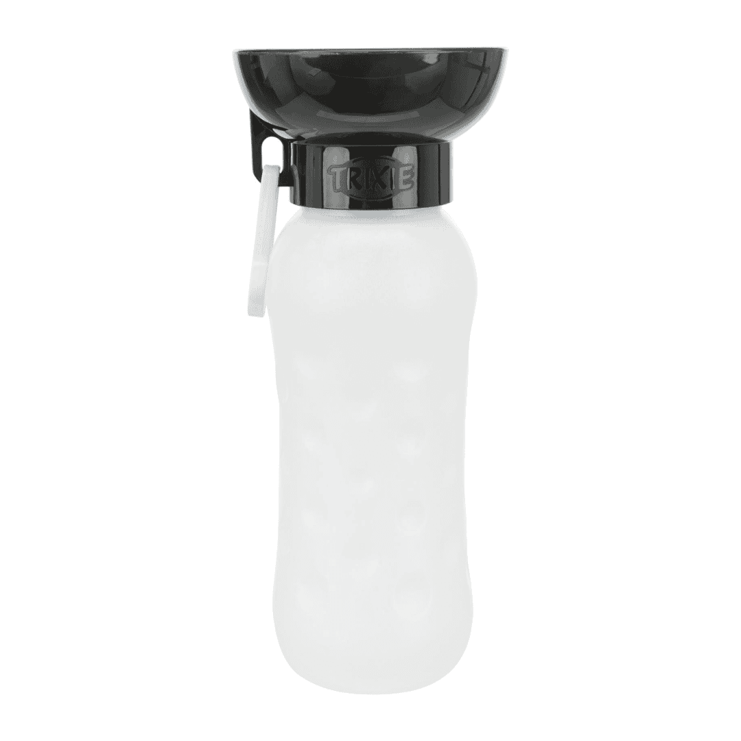 Dette produkt er en praktisk flaske med en tilhørende skål lavet af plastik og kommer i forskellige farver. Ved at trykke på flasken fyldes vand i skålen, hvilket gør det nemt at give dit kæledyr vand, når I er på farten. Flaske- og skålkapaciteten er 0,55 liter. En trykknapventil bruges til at åbne og lukke skålen, hvilket giver dig kontrol over vandtilførslen. Der er også en karabinhage til fastgørelse, f.eks. i et bælte eller en taske, hvilket gør det let at transportere. Denne flaske med skål er ideel til udendørsaktiviteter eller rejser med dit kæledyr.